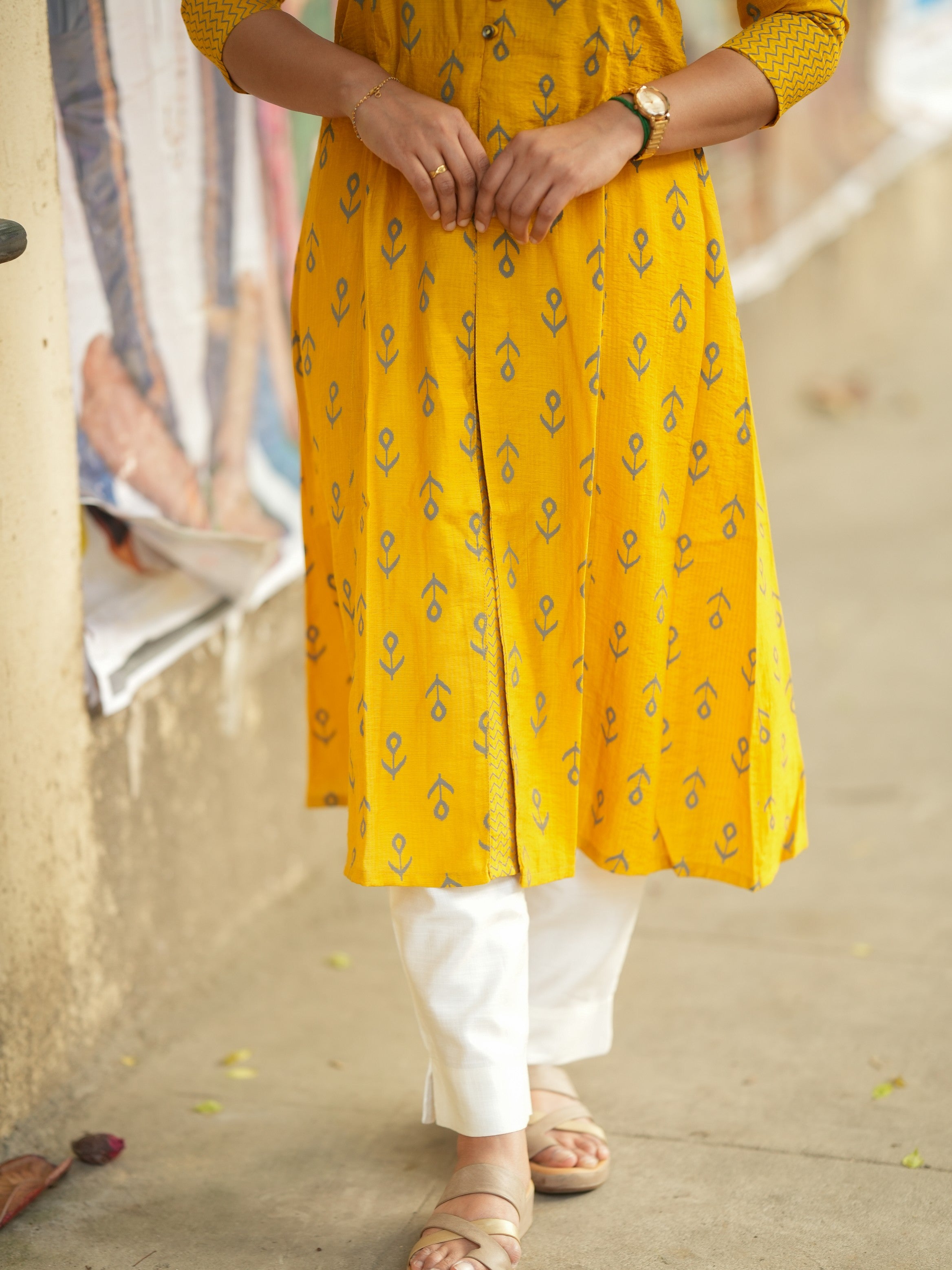 Style it with leggings, palazzos, or straight pants for a graceful everyday look.